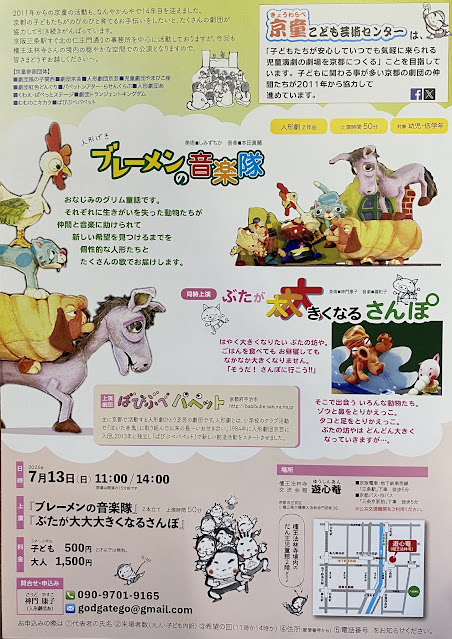 だん王法林寺境内の遊心庵での「京童えんげき祭ミニ」が年に4回と定着し、仁王門通りに「アトリエ仁王門」というつどいの場所もできて、親と子の劇場も一緒に楽しい企画を作っていきたいと思っています。